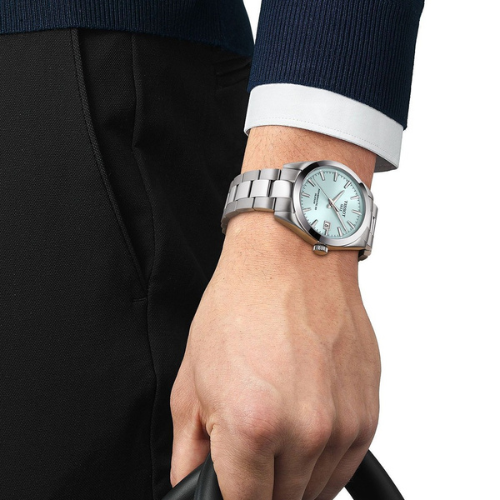 Luxury Watch Powermatic 80 Silicium Watch with a Stainless Steel Bracelet and Ice Blue Dial